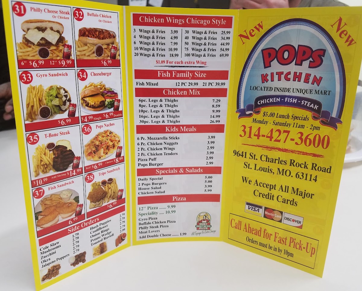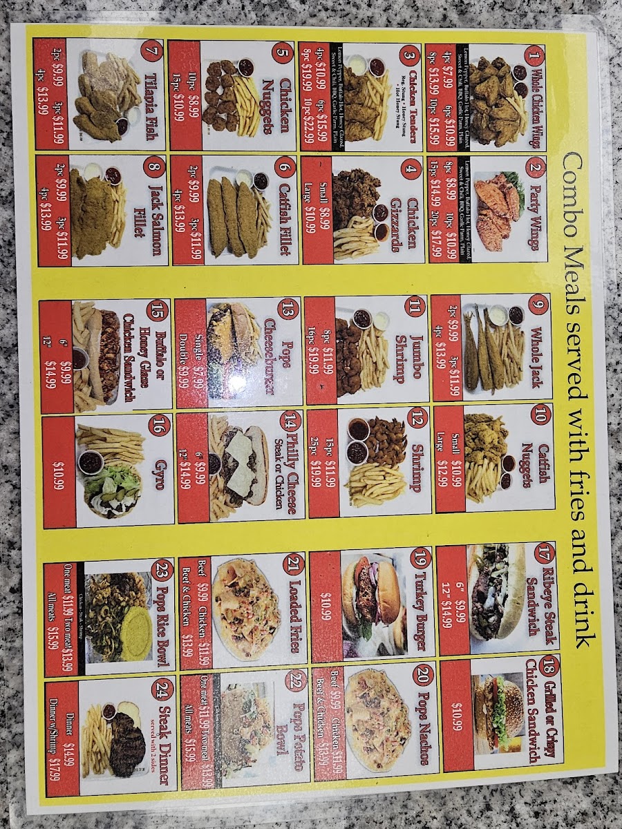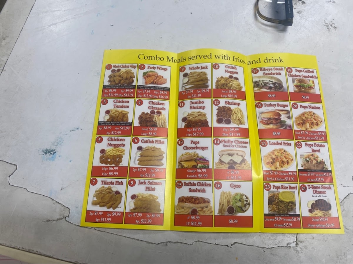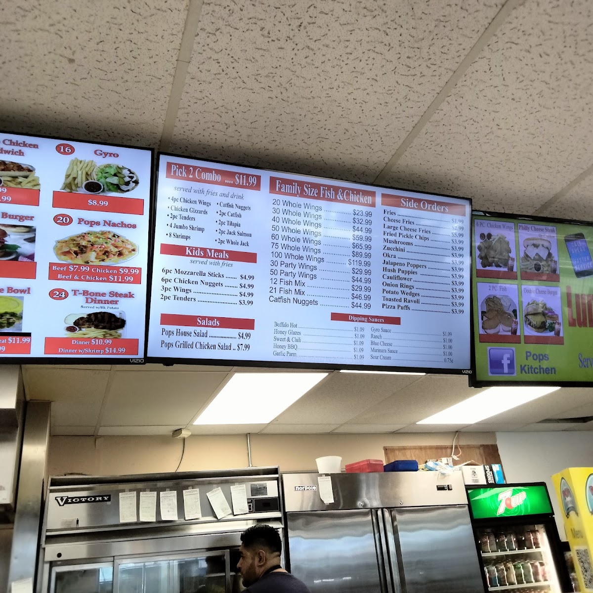 Pop's Kitchen offers a straightforward menu rooted in classic American comfort food. The selection feels approachable and satisfying, perfect for casual meals whether you're grabbing a quick bite or sharing a hearty plate with family and friends. The menu features a range of options from crispy catfish and French fries to generous wings in family sizes, alongside a variety of pizzas like buffalo chicken and gyro styles.